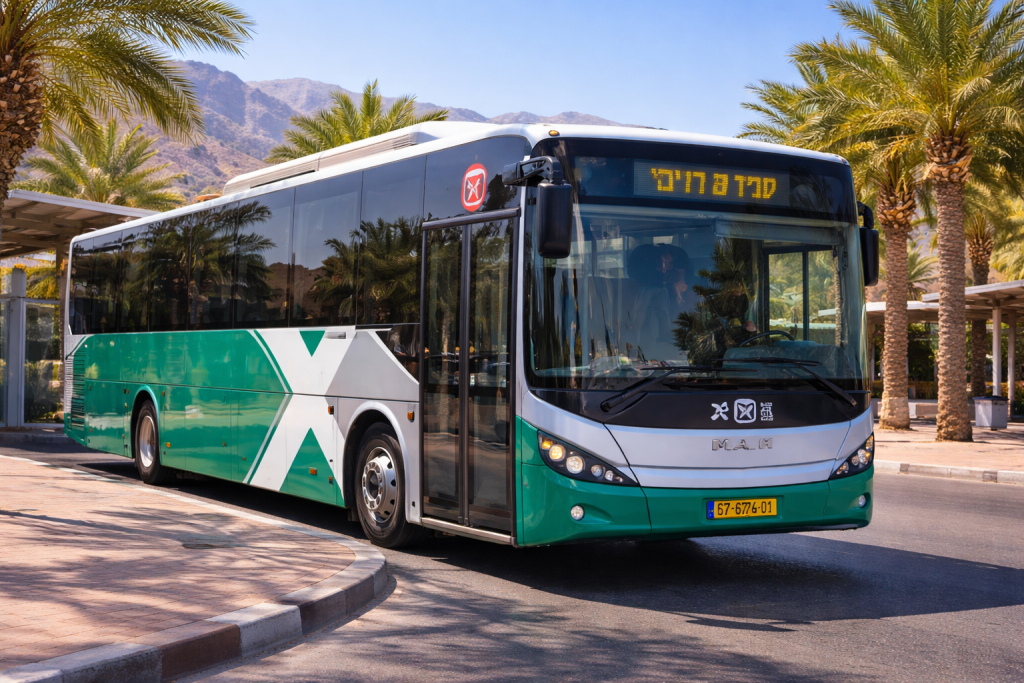 Eilat has a reliable and affordable local bus system operated by Egged. Buses connect hotels, beaches, shopping areas, and residential neighborhoods.
